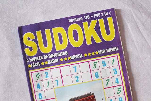 Me gusta madrugar y tomarme mi café con calma. En la tele no ponen nada bueno a esas horas, así que compré este cuadernillo de sudokus para acompañar el desayuno. Me enganché aquella temporada en la que todo el mundo estaba obsesionado con el Pou (no mintáis, que yo hasta lo vestí de Ravenclaw) y todavía sigo con el gusanillo. Aunque soy lenta y los de nivel intermedio ya me cuestan un poquitín 😅.